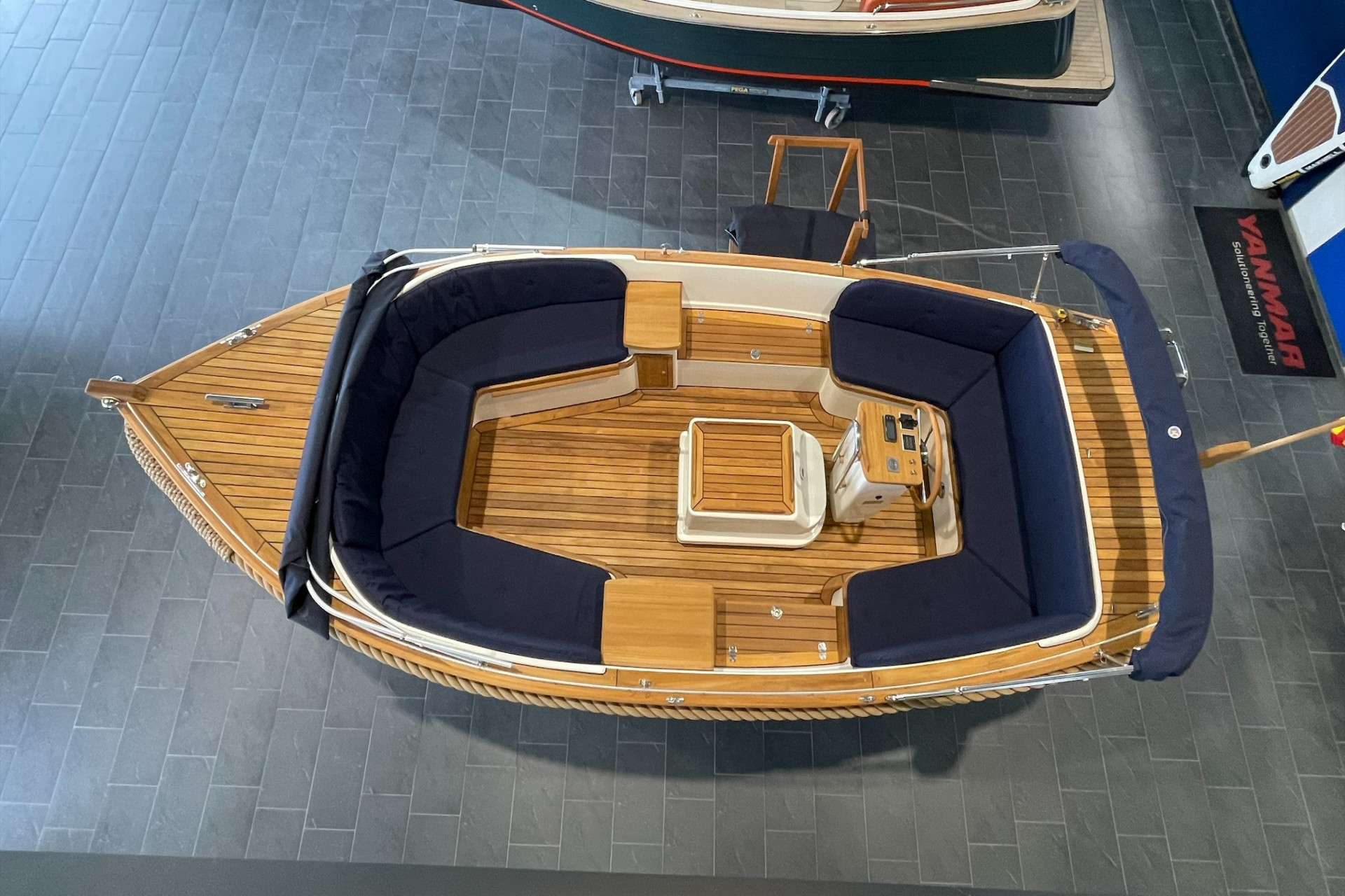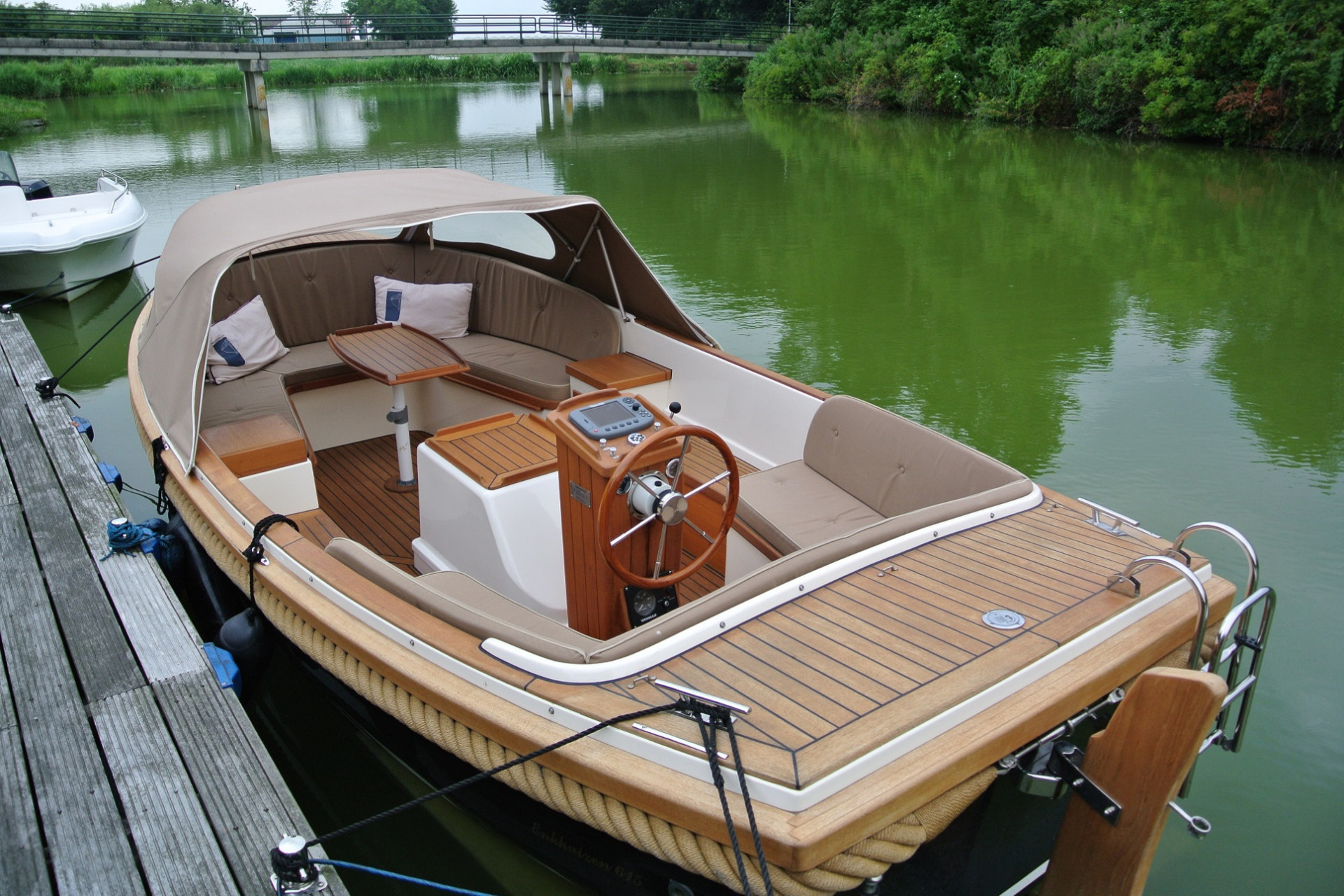 Massief teakhout op voor- en achterdek € 3250,=