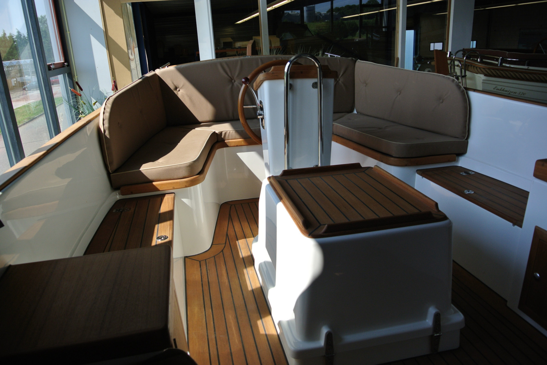 Standaard wordt de Enkhuizen 615 geleverd met een hydraulische stuurstand. Een helmstok gestuurde uitvoering is op verzoek ook leverbaar.
