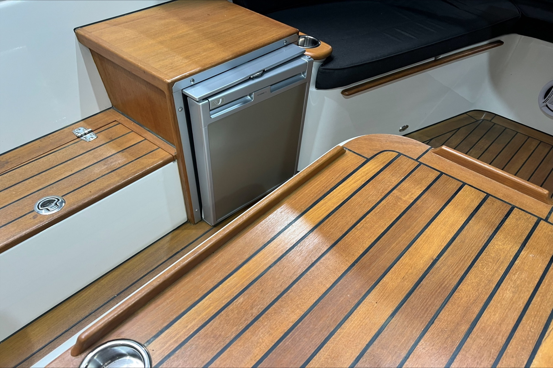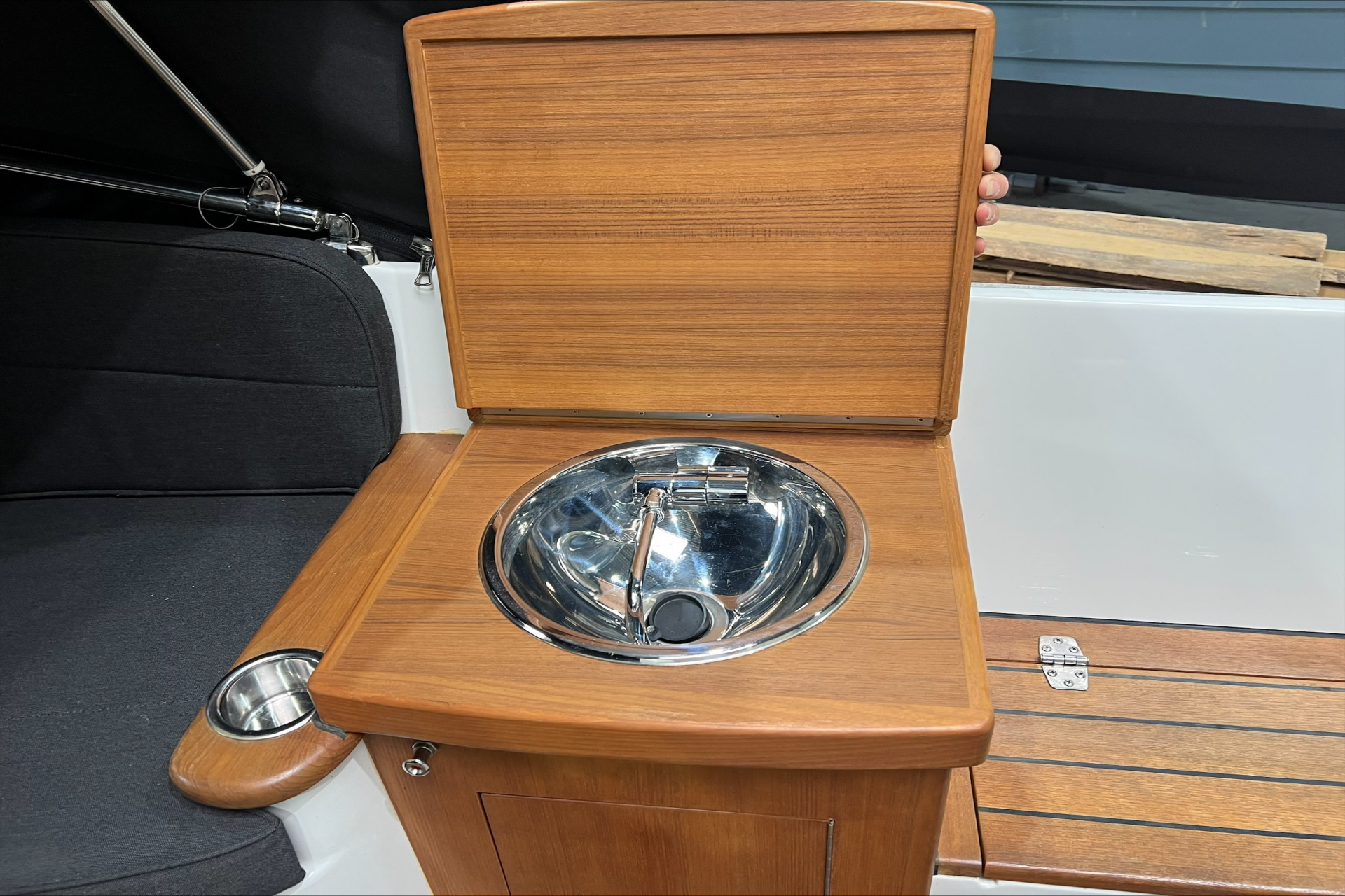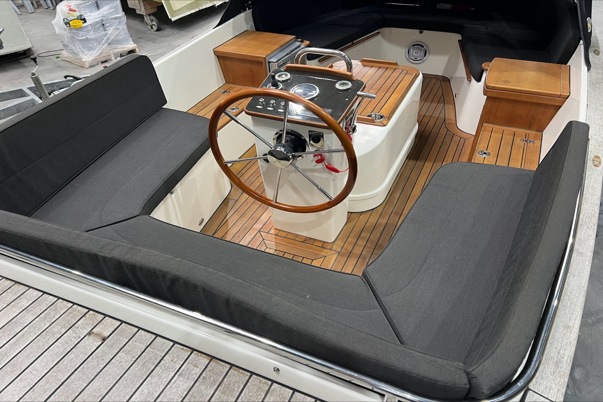 Massief teakhout op voordek, achterdek en zwemplateau