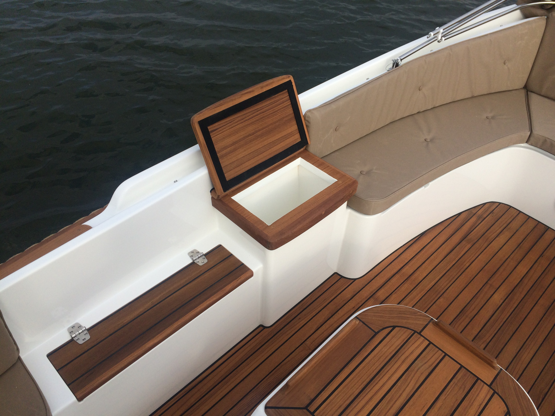 Teakhouten lijsten op de motorkast