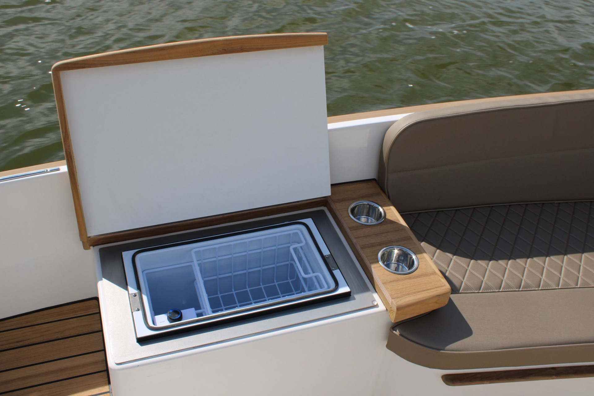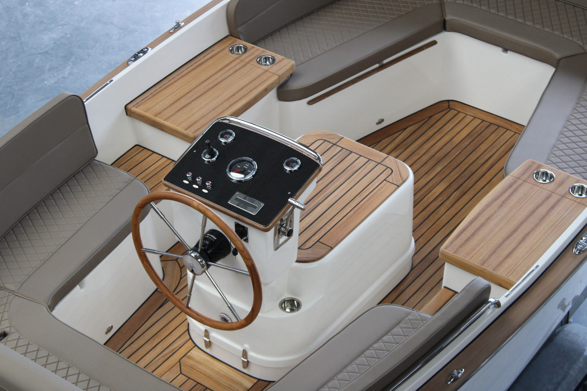 Massief teakhouten potdekselTeakhout op de motorkast